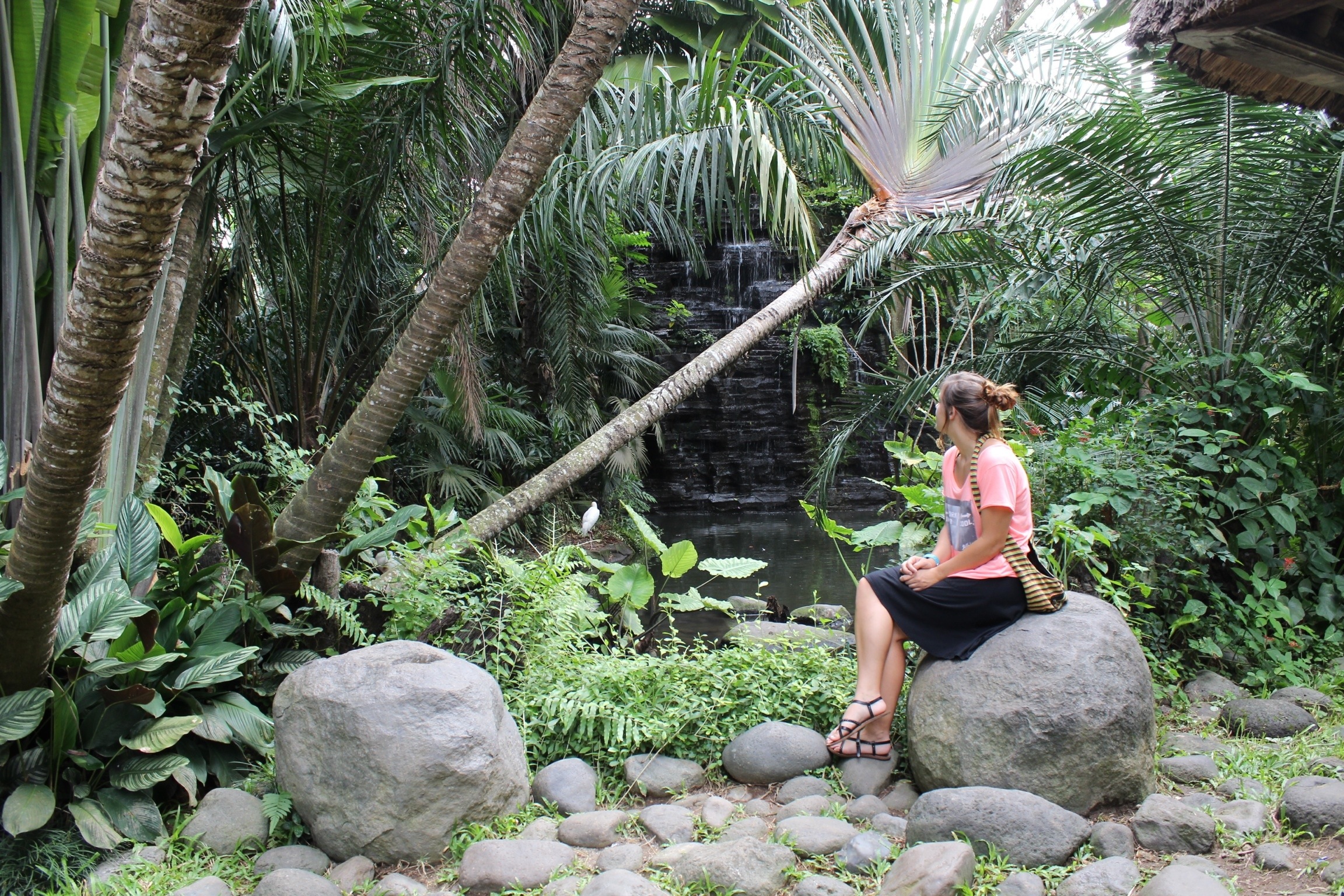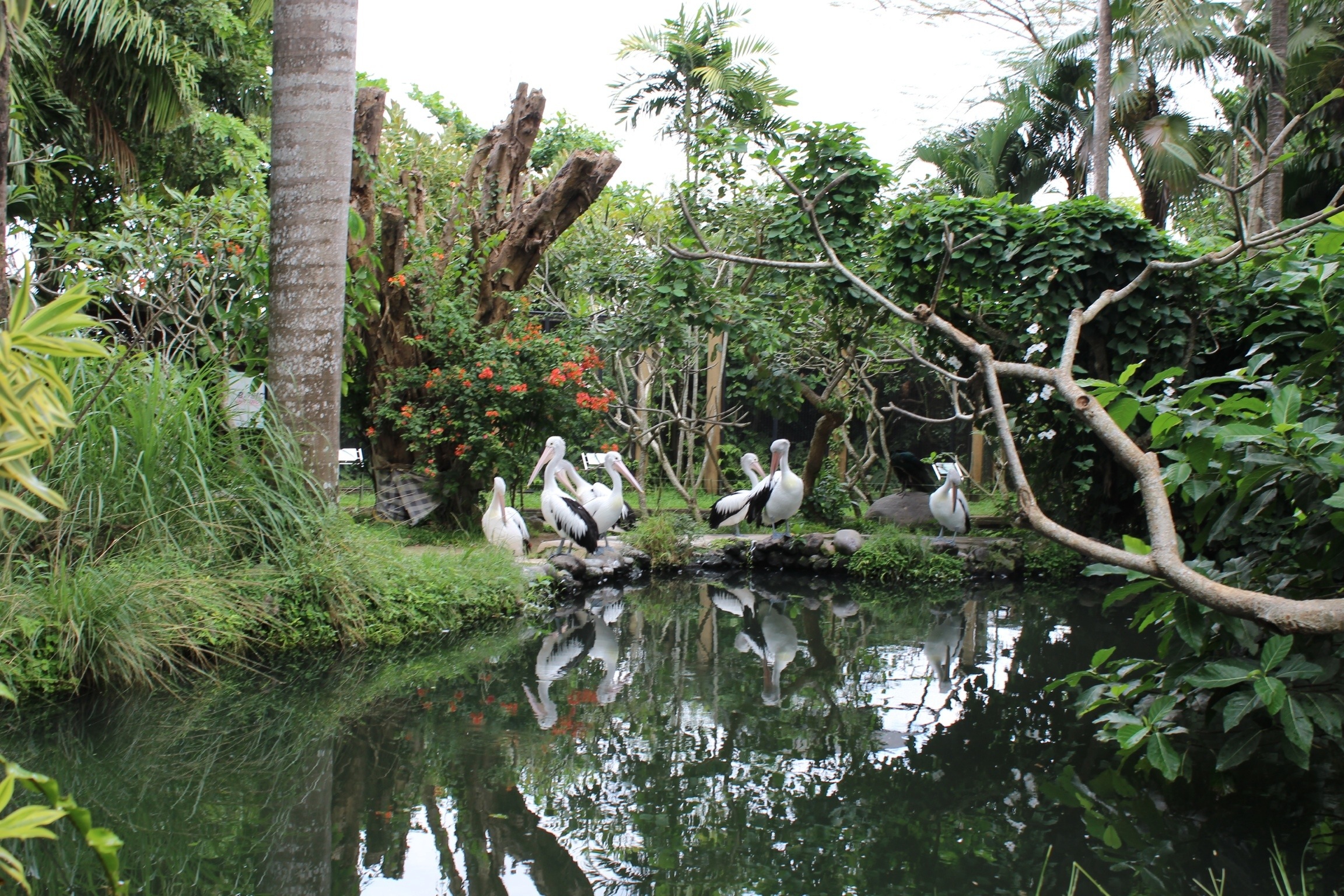 Although the reptile house was cool, the aviary was simply awesome. We saw rare, tropical birds I had never seen before; birds with bright red and blue and orange beaks, giant peacocks, beautiful swans and multi-colored roosters. Free of charge (a rare occurrence in Bali) we were allowed to hold friendly parrots, which tried to eat both my messy bun and my boyfriends afro. The animals seemed fearless and possibly even interested in people; those in cages often came right up to the fence to look at us while several flocks of wild birds roamed freely.