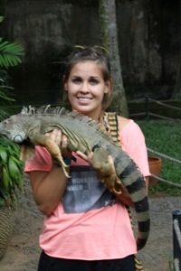 We moved on to the reptile park, which unfortunately only has the Komodo dragons out on Friday and Tuesday 😦 But we saw boa constrictors, small snakes, and were pretty much forced (again, free of charge) to hold giant iguanas. Mine even tried to climb up onto my head, which kind of freaked me out.
