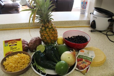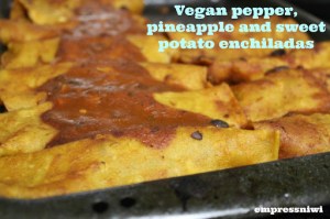 I used dried beans, fresh pineapple and a packet of organic enchilada sauce from Whole Foods; if you feel like saving time and dishes, feel free to use canned versions! (Old El Paso red enchilada sauce is awesome).