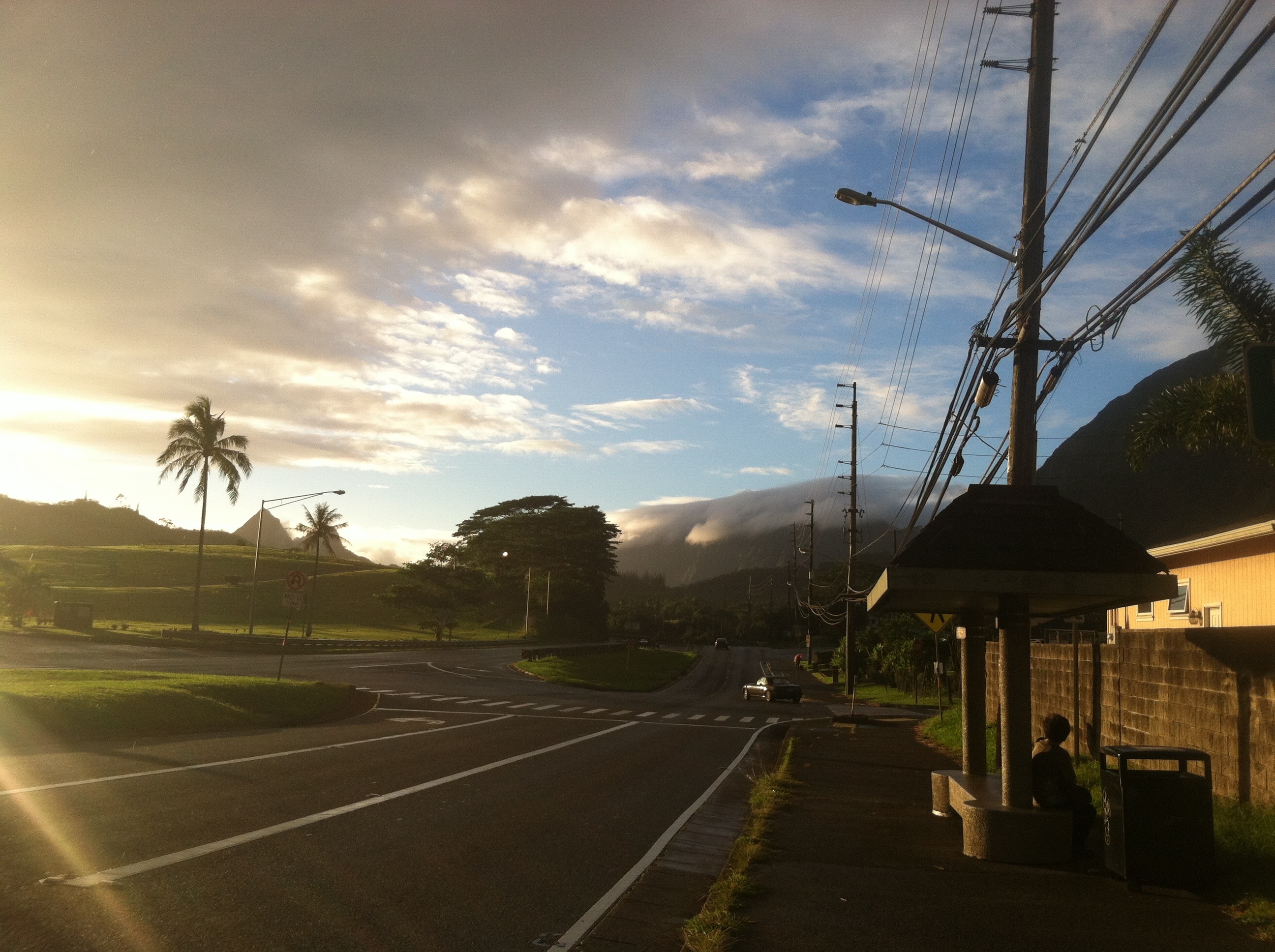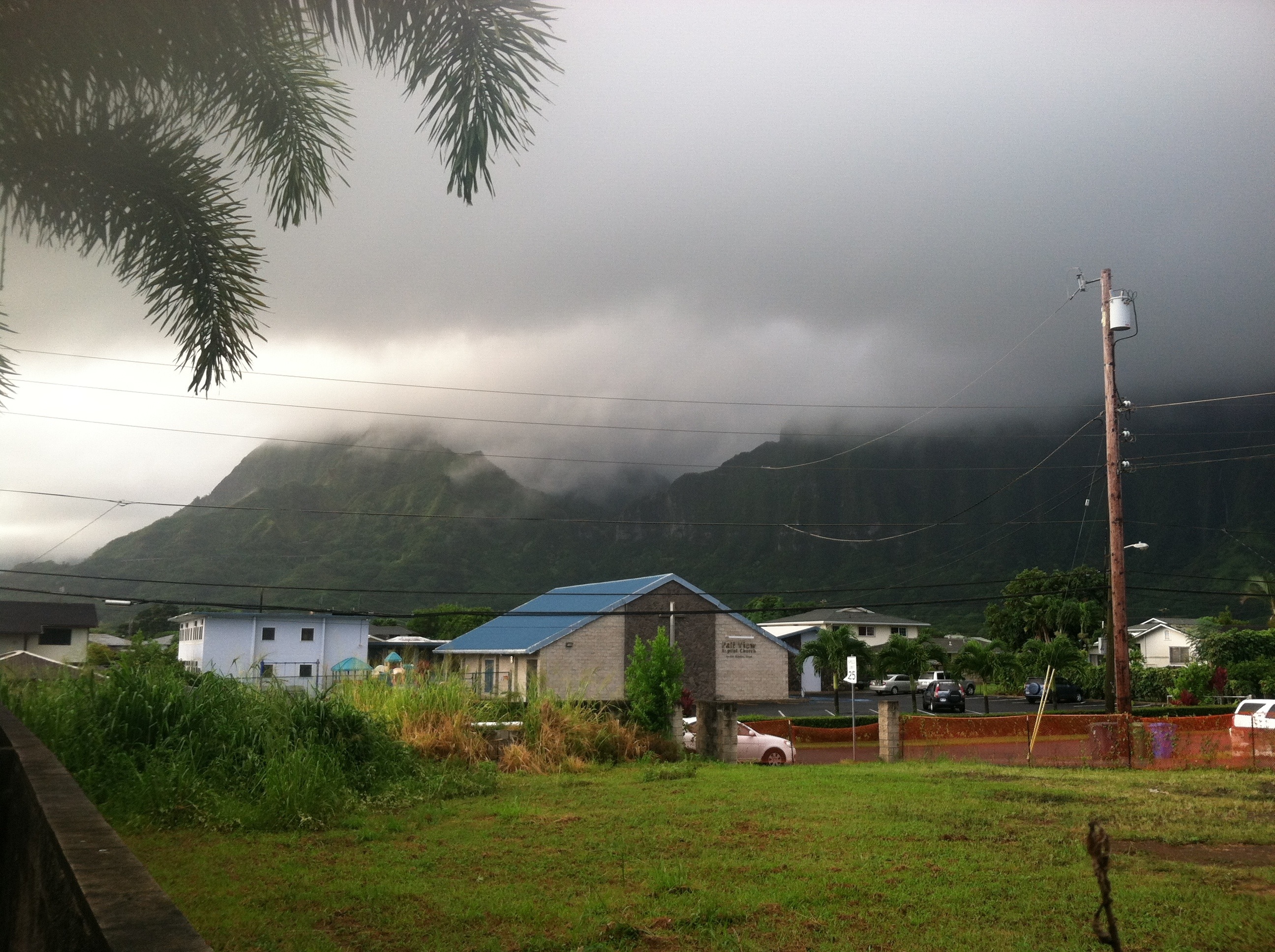 I live at the base of the Jurassic-Park-like koolaus, so good views are the norm. But during the lovely fall months, the season’s heavy rains send spiderwebs of waterfalls down the face of the mountains .