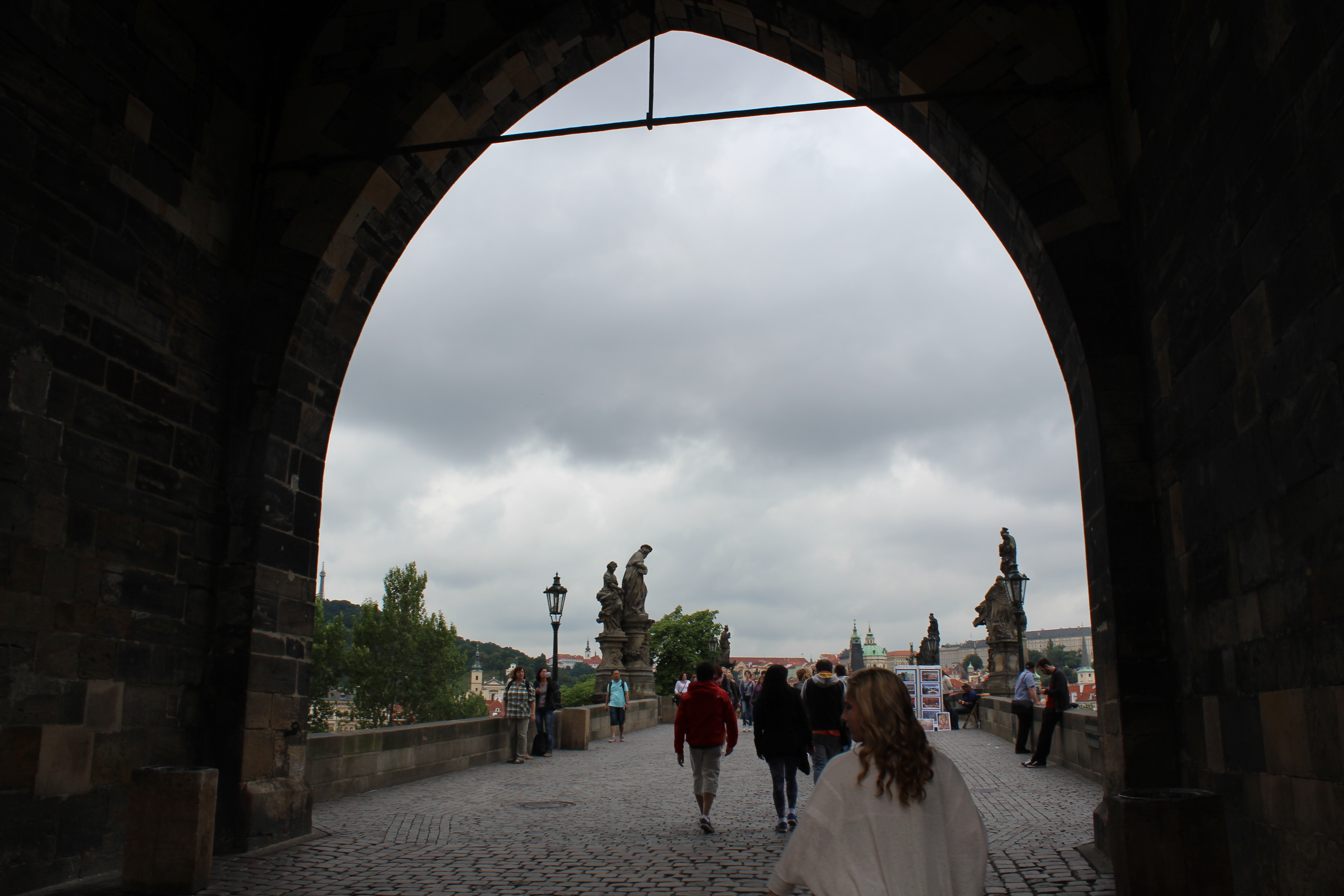 One of Prague’s grandest attractions is the St.Charles Bridge. Spanning over the Vitava River, the twelfth-century bridge connects either side of the vast city, which played an important route in trade throughout its history. The large, cobblestone bridge is bordered on either side by looming clock/lookout towers, with slits from top to bottom for shooting arrows in defense. It’s eerily dark and beautiful, filled with several stone statues and sculptures along its path.
