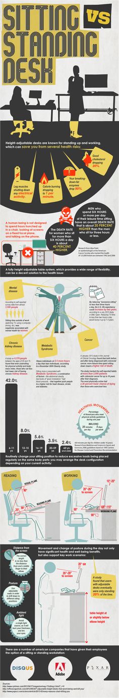 When I stand through some or most of the day, I have more energy, am more upbeat, and feel empowered talking to coworkers, since I’m standing eye-to-eye as to sitting below their line of sight. Being sedentary increases our risks for obesity and ill health, while standing makes me a happier and more productive worker. Some days or weeks, though, I do sit more than stand. Standing sometimes sucks; but for an active runner, standing up and stretching around helps my legs loosen up and prevents them from cramping, aches and pains.
