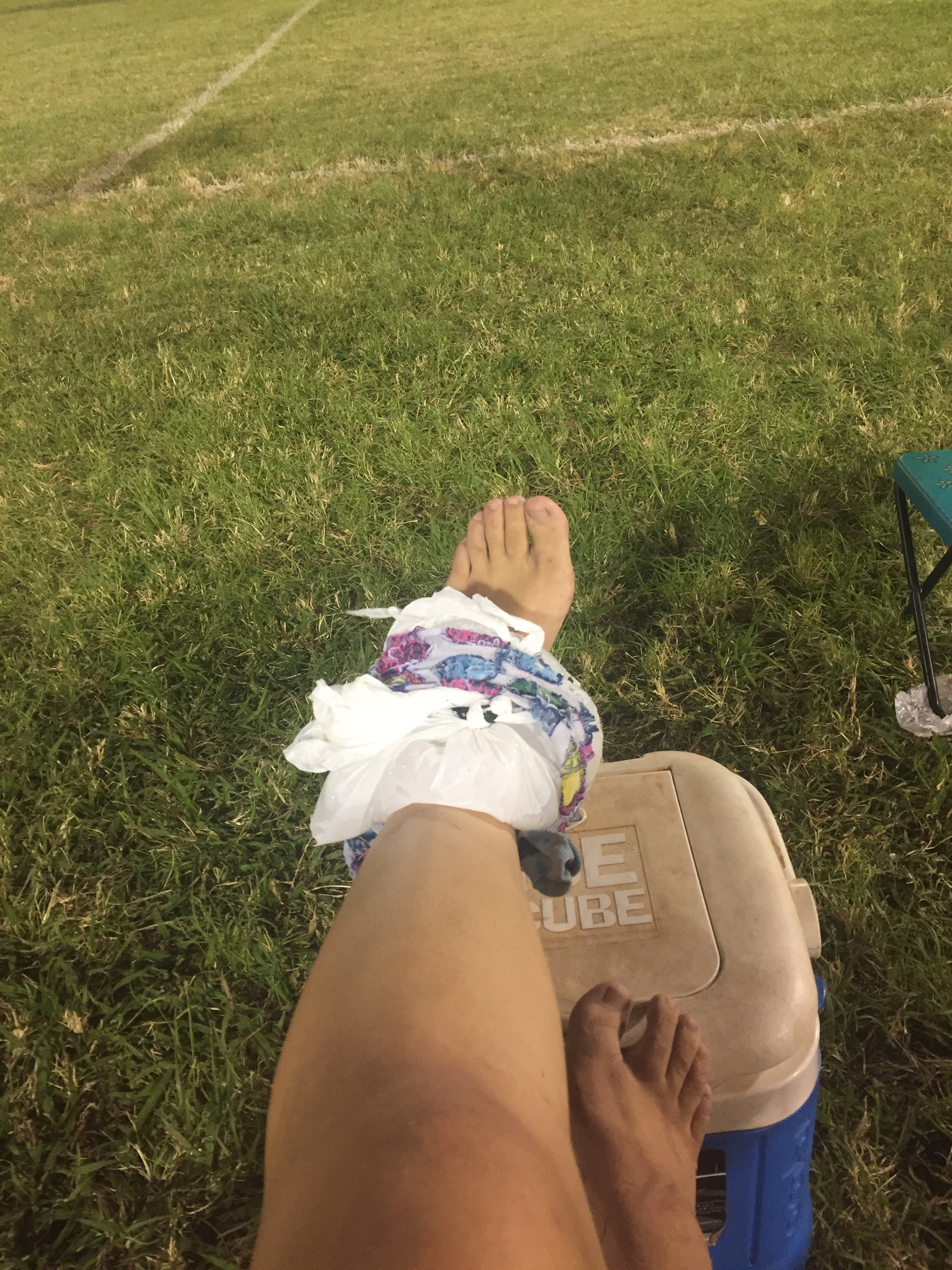 Last night was my first full-length, full-field soccer game in years. I was beyond happy and full of energy from all my marathon training, but unfortunately my ankle rolled right before the first half.