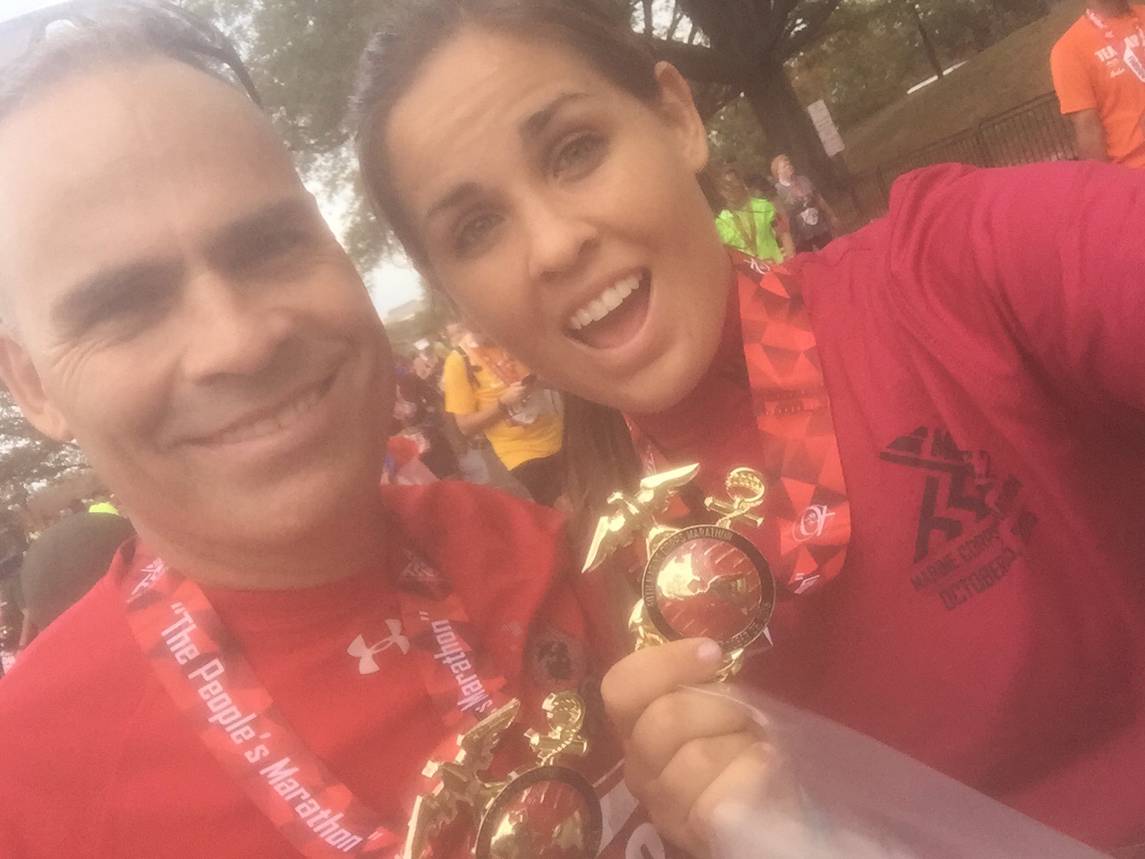 I loved being cheered on by an awesome crowd armed with hilarious signs,getting served water and Gatorade from hot young marines, and being part of such a unique event. Plus, we were barely sore the next day – aside from my dad’s back- and got to explore the city the day after the race. I’m so blessed to finally have that daunting 26.2 under my belt! And this experience is one I will remember for the rest of my life.