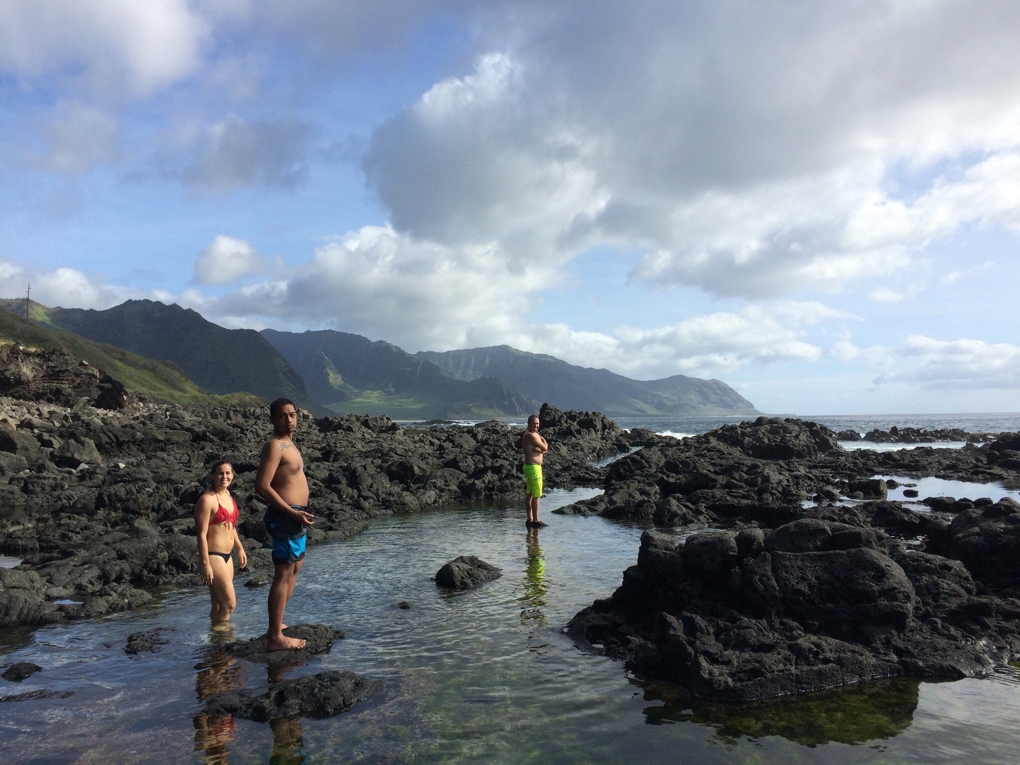 The tide pools are awesome; isolated, turquoise and teeming with life. There were crabs, vana (Hawaiian sea urchin) and small fish busying about beneath our feet. The pools were big and deep enough to swim in, and were warmer than the sea from the sun’s glare.