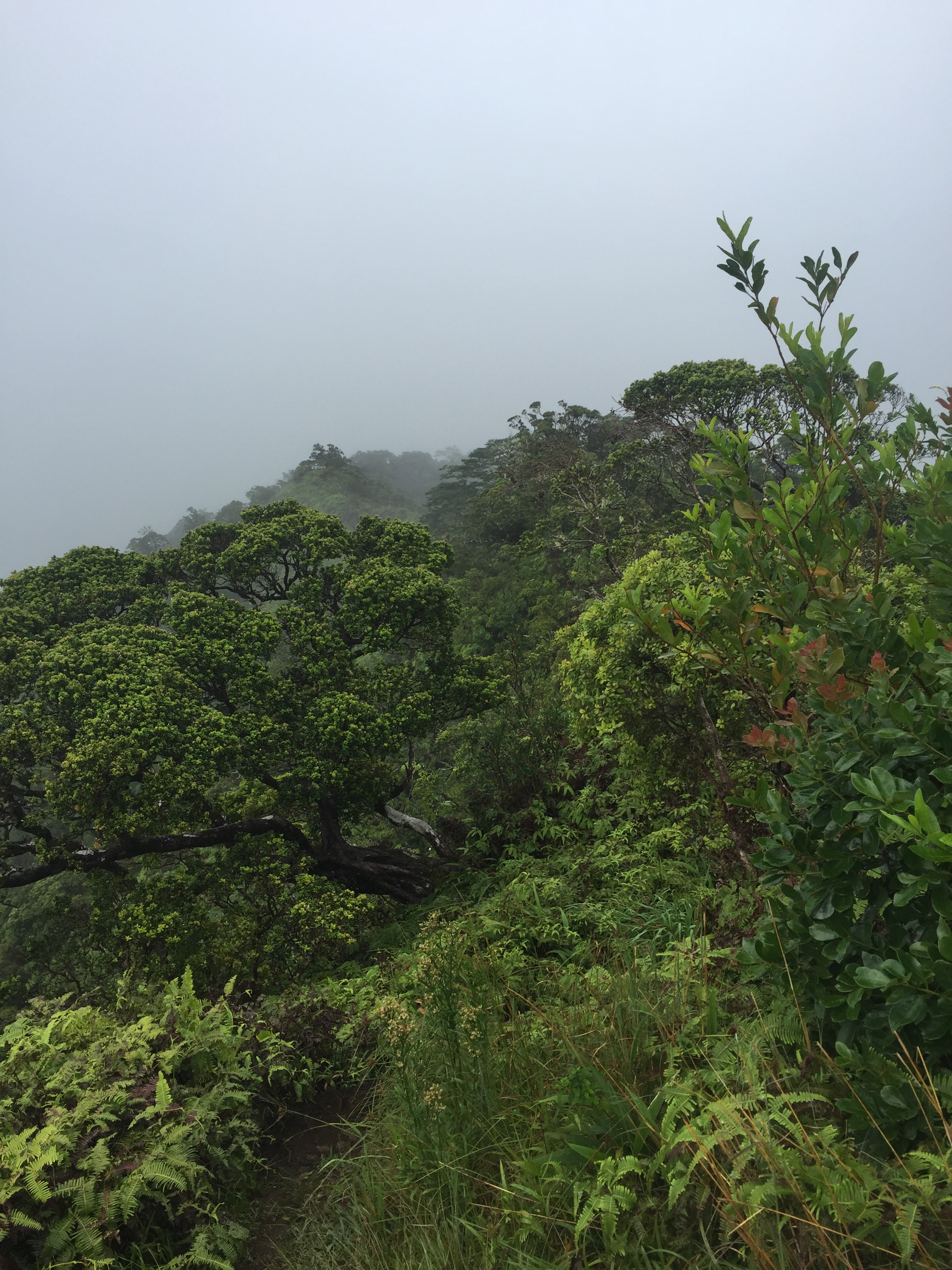 It was one of those hikes were everything went wrong; we left too late, picked the worst possible weather, and struggled to slip and slide up muddy slopes. Mt. Olympus usually offers stunning, panoramic views of Oahu’s south and east shorelines, but it was so cloudy we couldn’t see a damn thing. In fact, it felt as if we were walking on mist itself, the ridge breaking out just above the crown of the clouds.