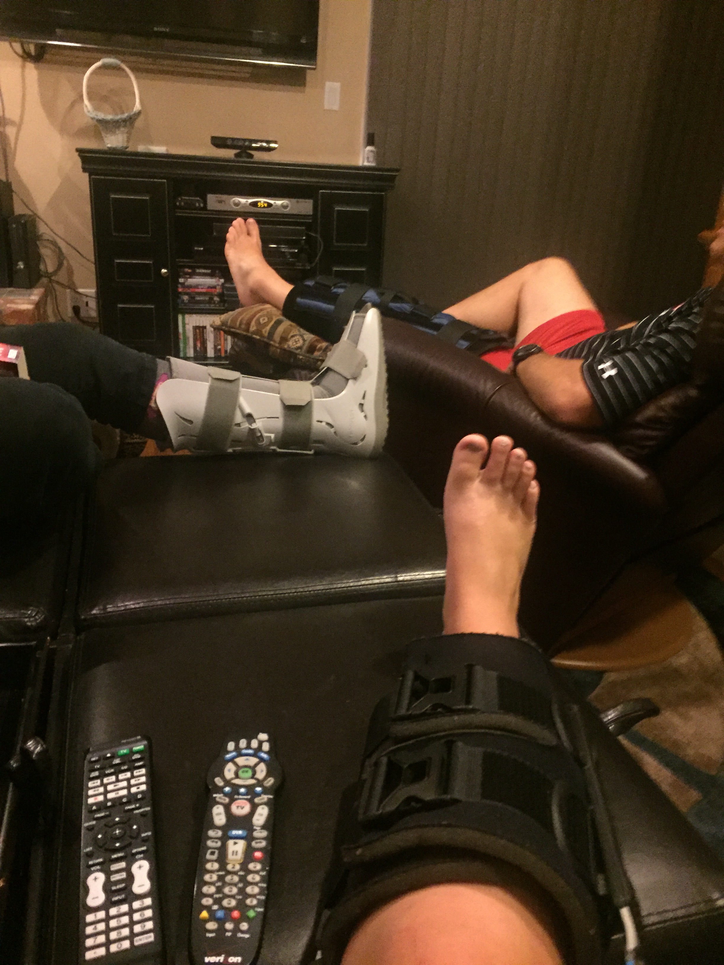 Seriously, that really did happen. Don’t believe me? My sister sent me this of all of their boots chilling at home together in collective injured non-travelness.