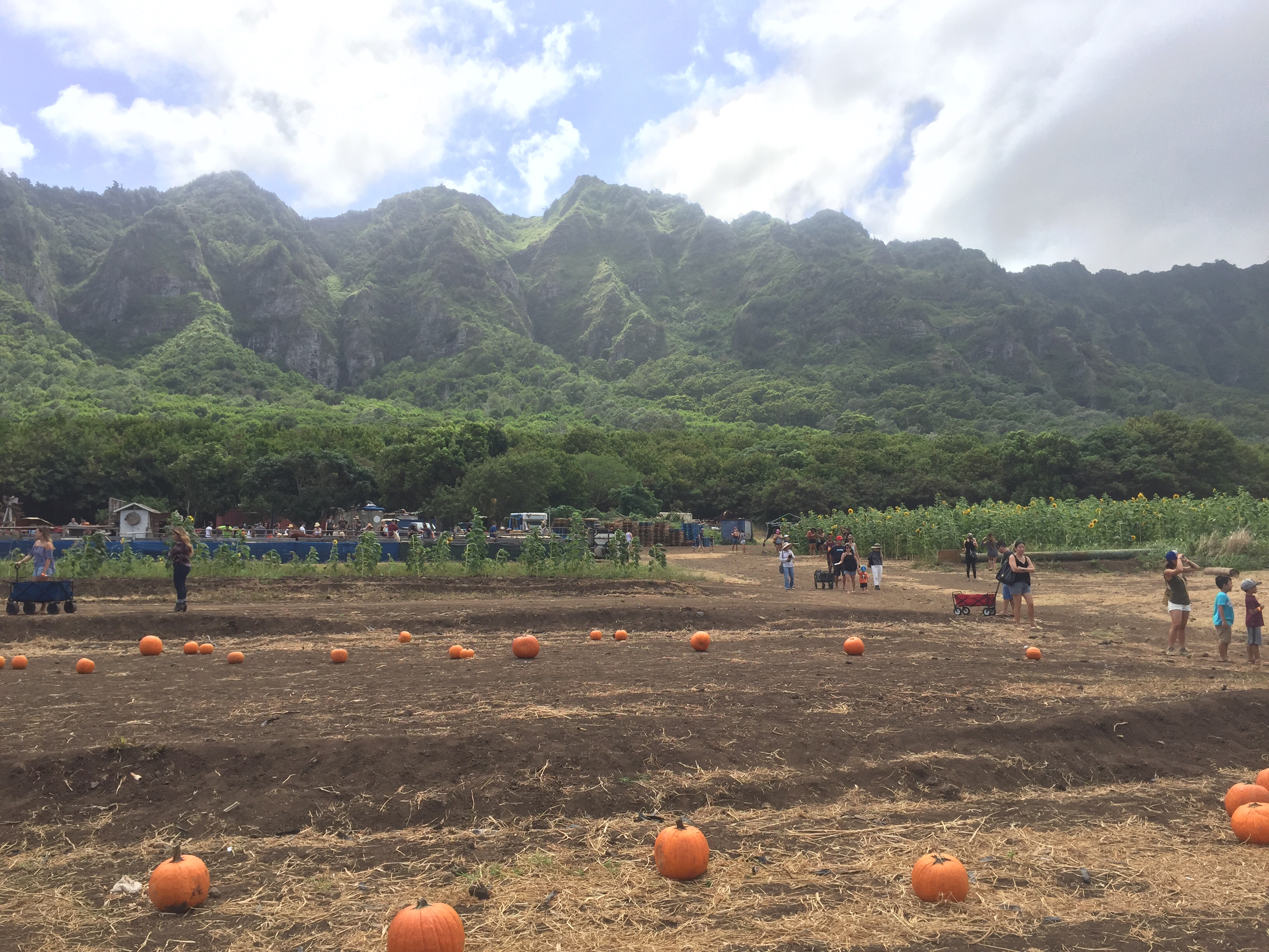 When I found myself with an empty, stormy Saturday not suitable for surfing or hiking, I immediately took advantage and dragged my bf and our pup to the pumpkin patch. I absolutely love waimablo, nicknamed “God’s Country” for its astounding beauty between turquoise seas and at the foot of the majestic koolau mountains.