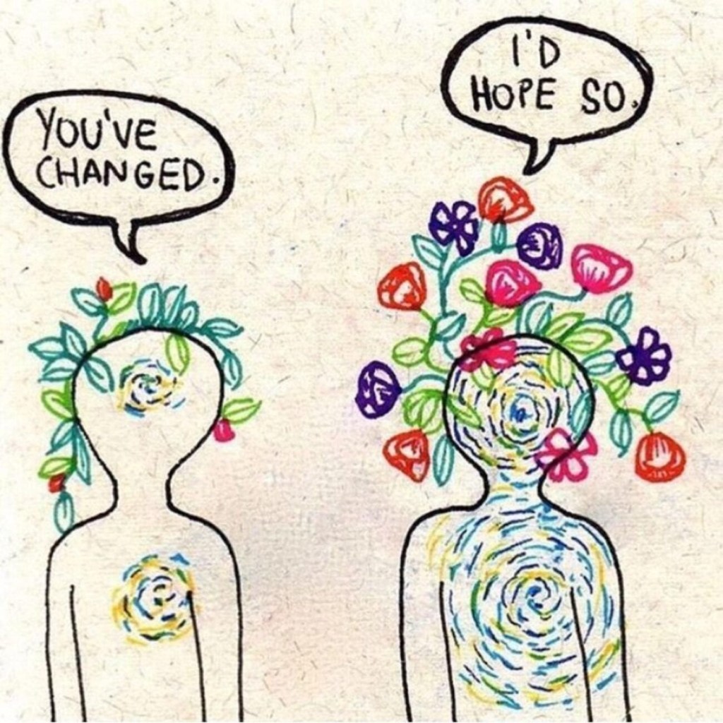The next time someone says, “wow, you/she/he has changed!” I’m inviting myself to openly answer, “of course I/they have. That’s life. We’re supposed to change.”