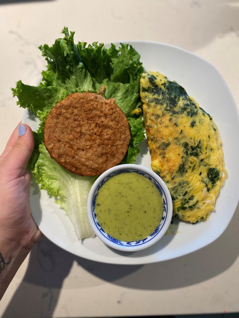 On the rare days I want a savory breakfast, I’ve been loving making Just Egg vegan omelets with spinach and non-dairy mozzarella cheese. I also add a little garlic and cook in a little bit of plant-based butter, and pair with a mock sausage patty and avocado salsa. This is another Sunday morning/extra time breakfast, but it’s enjoyable and well worth it.